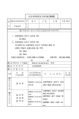 단독소유자를포함한수인의합유로이전하는경우등기신청서