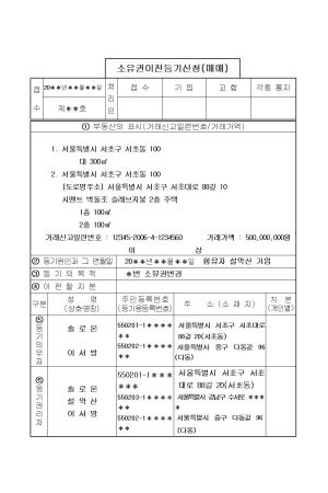 소유권에관한등기신청서
