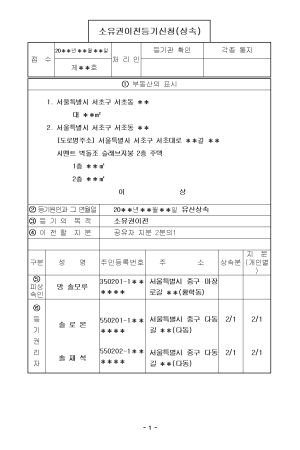 구민법당시(1959.12.31.이전)유산상속으로인한소유권이전등기신청서