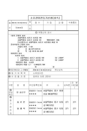 상속기타일반승계로인한소유권이전등기신청서