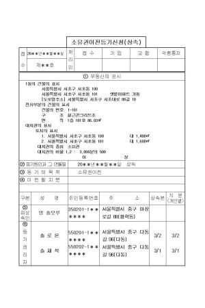 소유권에관한등기신청서