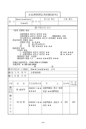 토지소유권이전등기신청서(공동상속안중1인이상속분양수)